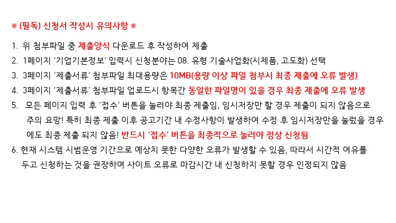 본 지원사업은 ‘유형기술사업화’ 에 해당 되어 신청서 작성시