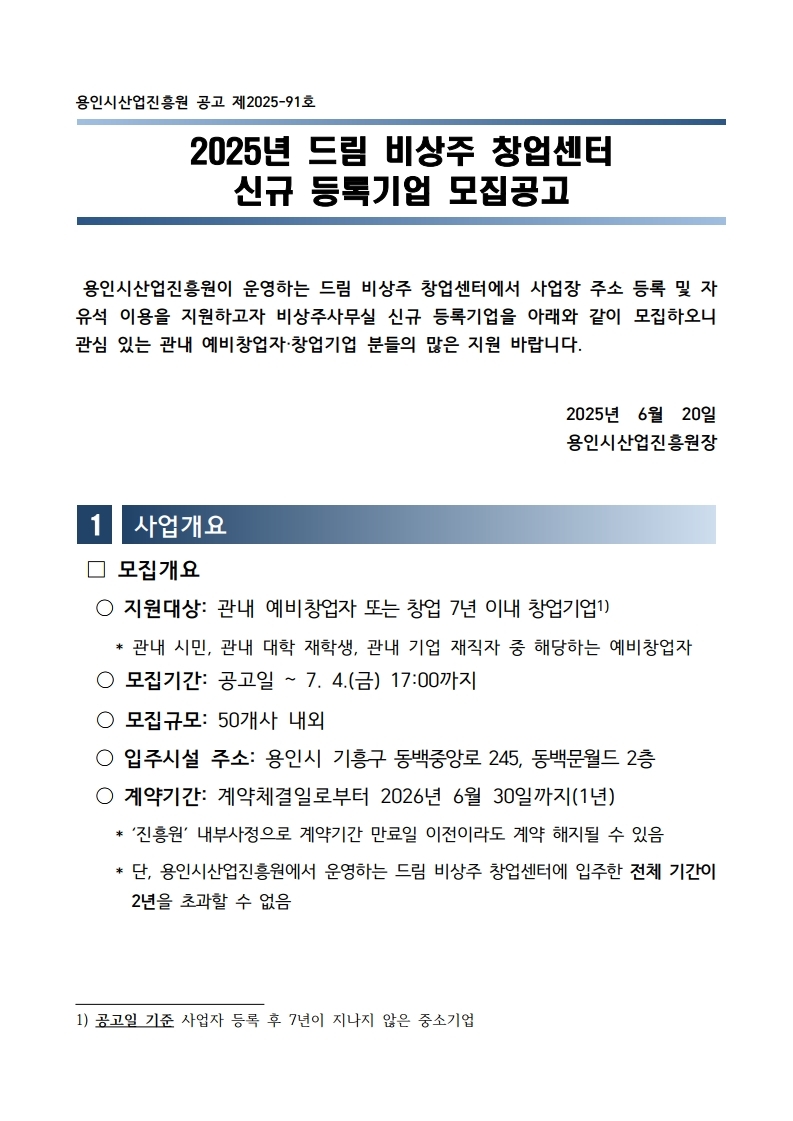 2025년 드림 비상주 창업센터 신규 등록기업 모집 공고
