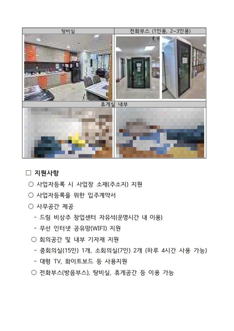 ※ 드림 비상주 창업지원센터 공간 이미지는 첨부된 공고문 참조