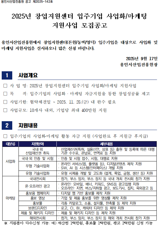 2025년 창업지원센터 입주기업 사업화/마케팅 지원사업 모집공고