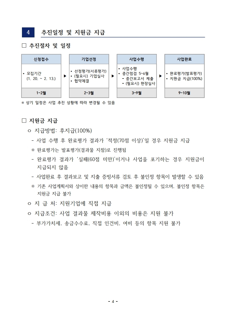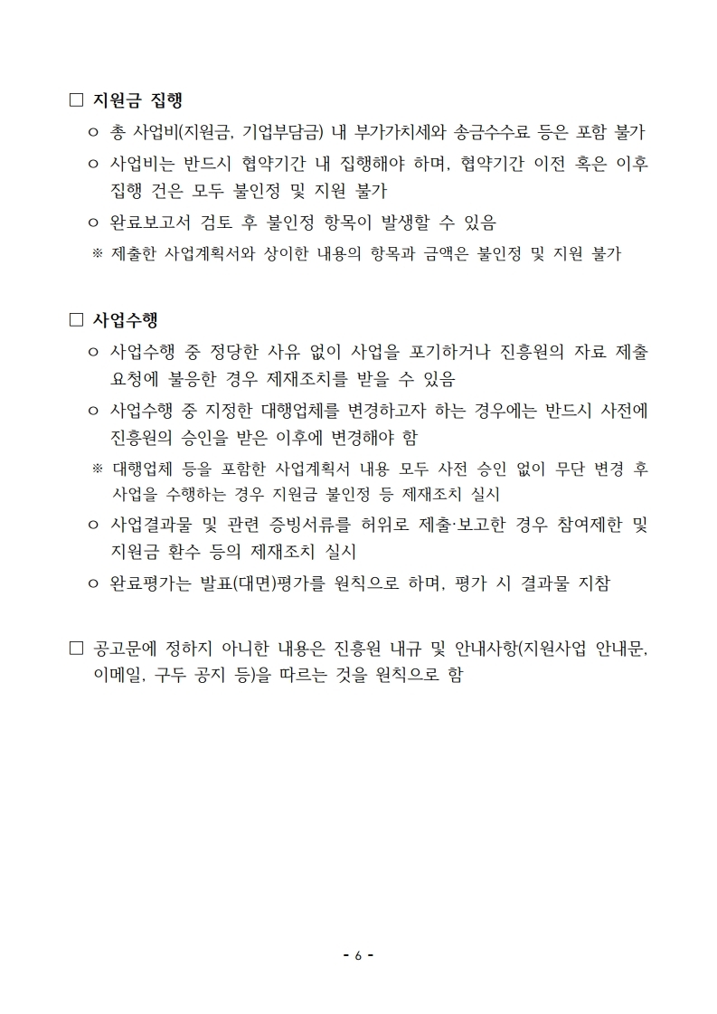 - 사업 신청 시 대행업체 사업자등록증과 세부 산출이 포함된 견적서 제출 필수